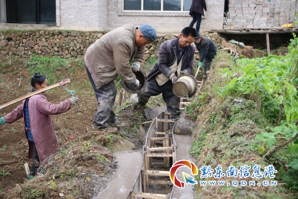 施工人員正在修建灌溉水渠