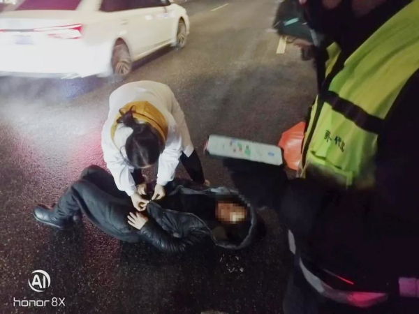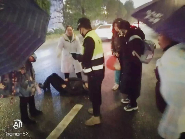 熱心市民把電動車停在傷者旁邊,防止二次傷害