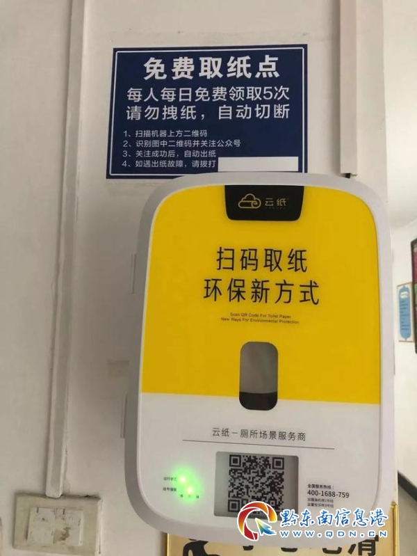 這種“新玩意”,叫“云紙掃碼取紙”。目前凱里的許多廁所都安裝上了它。