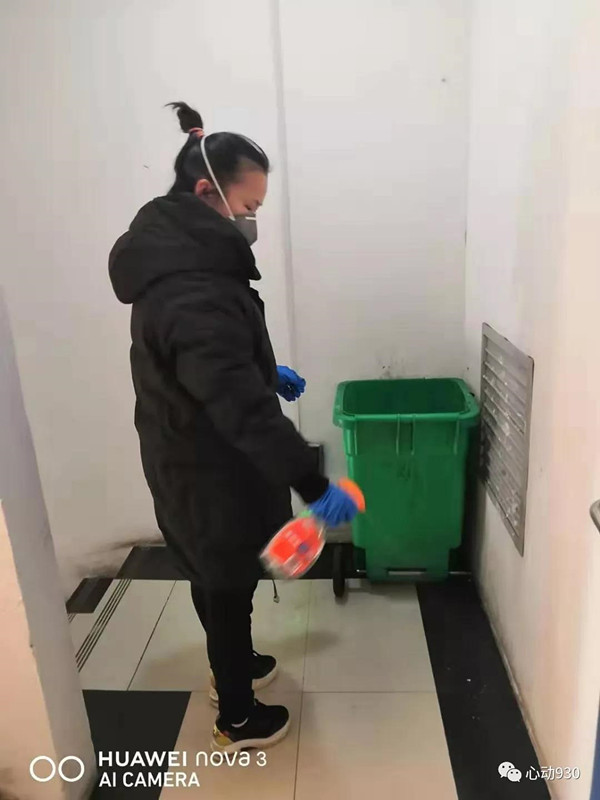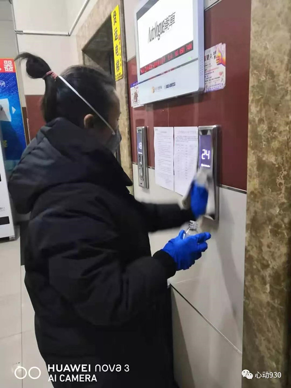 走進小區樓道,保潔員正用消毒水擦拭電梯間。“每天打掃完衛生,都要用消毒液把大門、電梯這些大家經常接觸的地方再擦一遍。”她告訴記者,物業幾天前就給工作人員配發了口罩及膠手套,提醒大家務必做好衛生消毒和自身防護工作。一些業主為了表示對物業工作的支持,偷偷送來了100個口罩,讓辛苦的物業人做好自身的保護。