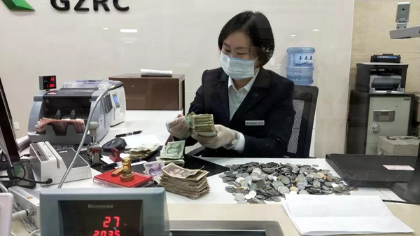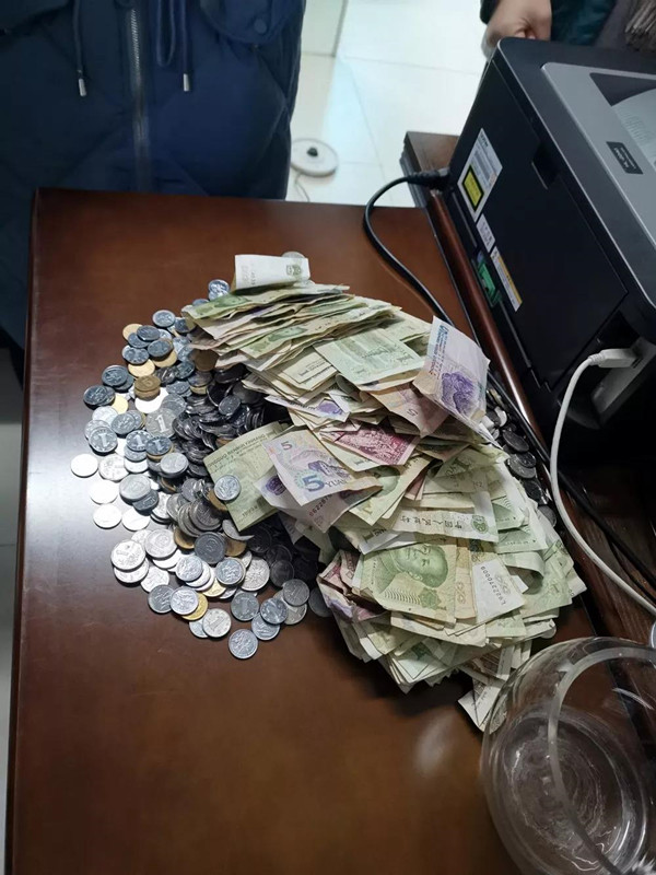 小布袋雖然不大,但里面的東西可真不少,明顯是孩子日積月累攢下來的零花錢。除了20張百元紙幣外,還有數百個10元以及5元、1元、五角、1角的硬幣。最終,經過2個多小時銀行工作人員累計清點出了2554.8元。
