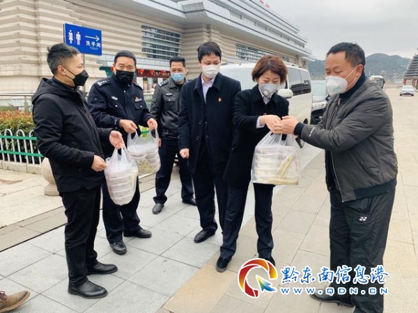 “大家辛苦了,今天是元宵節,我們給各位準備了湯圓,祝大家節日快樂!”簡短樸實的話語,讓奮戰在凱里高鐵南站抗疫一線的工作人員格外暖心。除此之外,凱里經濟開發區農商行還為他們送去了水果、方便面、礦泉水、酒精等物資,助力打贏疫情防控阻擊戰。