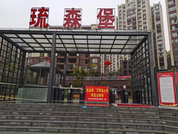 與其他小區(qū)不同的是,琉森堡萬(wàn)國(guó)城小區(qū)的進(jìn)口處有一個(gè)專門的消毒通道,進(jìn)出小區(qū)的居民,都要走該通道消毒,避免病毒帶入。