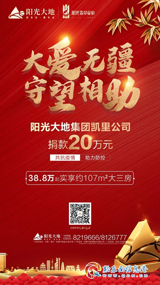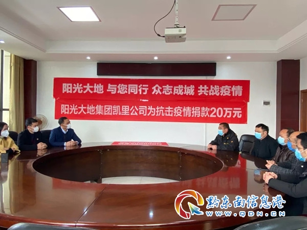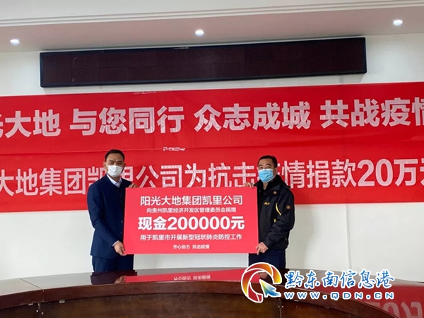 2月17日,陽光大地集團凱里公司通過貴州凱里經(jīng)濟開發(fā)區(qū)管理委員會捐款人民幣合計20萬元,定向用于全力支持凱里市抗擊新型冠狀病毒感染的肺炎疫情防控工作。