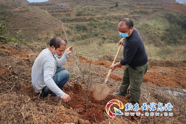 領到果苗的村民們,欣喜地往自家地里走去。挖坑、培土,忙得不亦樂乎。
