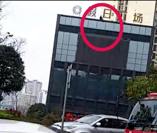 (一中年女子爬上凱里文化北路假日廣場售樓部樓頂上,搖搖欲墜)