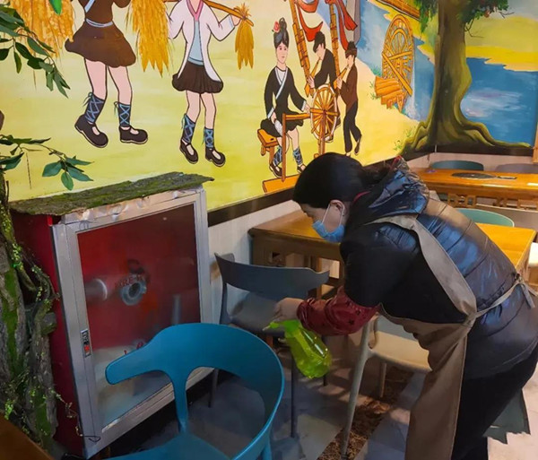 總而言之,自恢復堂食的消息發布后,凱里不少餐飲店已經開始積極準備,打掃衛生、消毒。有的早已蓄勢待發只等開業。在記者走訪的所有的餐飲店內,都沒有看到扎堆就餐的現象,商家們都在店門口擺放了消毒酒精和消毒用品,顧客還需要測量體溫才能進入店中,就連結賬或者點餐都要保持距離。