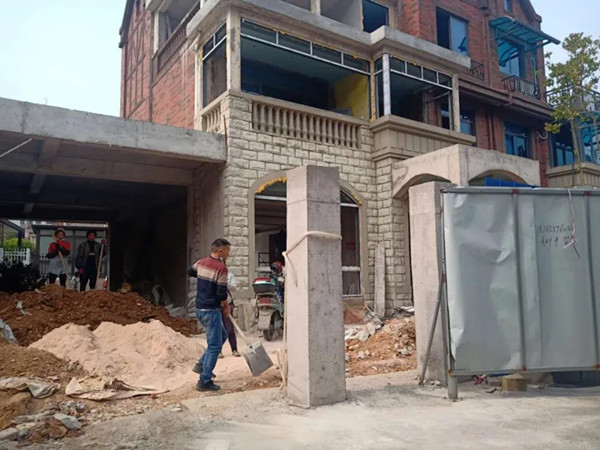 4月1日下午,小編“混”入碧桂園內(nèi)進(jìn)行暗訪,發(fā)現(xiàn)網(wǎng)友反映的情況客觀存在。小編看到,許多別墅門口的圍墻(欄)都已建好投入使用,少數(shù)正在建設(shè)中,工人師傅正頂著太陽施工。其中一棟別墅不僅建了圍墻,還在墻內(nèi)的空地上搭建了鋼架。