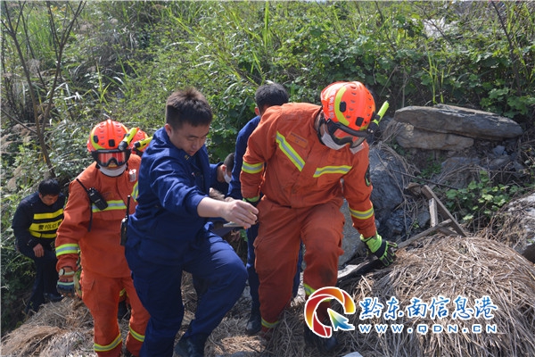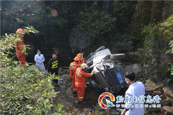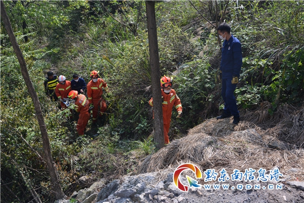 救援人員到達(dá)現(xiàn)場后,經(jīng)與知情人溝通了解得知,事故車輛位于距離公路下方約50米的小河溝中,一名男子被困車內(nèi),意識(shí)清醒暫無生命危險(xiǎn)。了解情況后,指揮員安排數(shù)名經(jīng)驗(yàn)豐富的救援人員攜帶救援繩索、多功能擔(dān)架,沿山路徒步行至事故車輛所在地點(diǎn)。