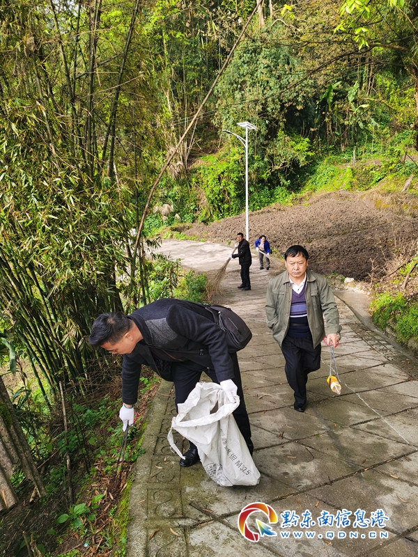 在整治活動現場,黨員干部發揚不怕臟、不怕累的精神,帶著掃帚、火鉗、麻袋等工具,沿著村主要路段,分工合作,撿拾路邊草叢、石縫里的煙頭、塑料袋、廢紙,清理池塘里的垃圾,一時間村寨中隨處可以看到干部群眾忙碌的身影,充分展現了脫貧攻堅過程中團結互助的良好精神風貌,形成了濃厚的人居環境整治氛圍。