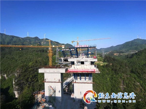 據(jù)了解,凱里環(huán)城高速公路北段項目全線共有清水江大橋、老山河大橋、羊老河特大橋3座剛構(gòu)橋。老山河大橋左右幅全長均為633.6米,為全線控制性橋梁之一,橋梁8號主墩墩身高81米,此次澆筑的橋梁左幅邊跨合攏段長2米,梁高3.4米,橋面寬度12.75米,底板寬7米,翼緣懸臂長2.875米,頂板厚30厘米,底板厚32厘米,腹板寬度50厘米,設計澆筑C55混凝土23.1立方米。