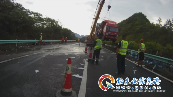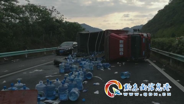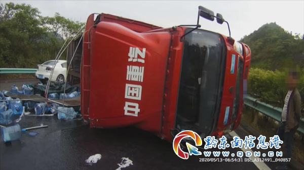 2020年5月13日上午,黔東南州交警支隊(duì)高速一大隊(duì)值班室接到報警電話稱,在滬昆高速凱里境內(nèi)牛巖山大橋上,一輛貨車發(fā)生側(cè)翻,嚴(yán)重影響過往車輛通行。