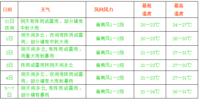 二、下周(6月1~7日)全市具體天氣預報