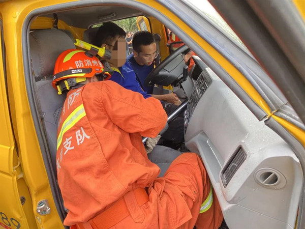 7月6日下午16時12分,凱里市龍場鎮凱施路路段發生一起交通事故,一人被困車內,情況十分緊急。接到報警后,清江路消防救援站立即出動趕往現場。