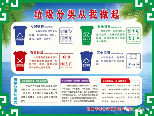 近年來中央、省、州相繼出臺文件推行垃圾分類工作,凱里市也于2019年11月、12月出臺了《凱里市垃圾分類工作方案》和《凱里市垃圾分類考核暫行辦法》,目的就是引領(lǐng)市民自覺投入到垃圾分類工作中來,讓我們的生活環(huán)境更優(yōu)美、更潔凈,生活質(zhì)量得到提升,幸福指數(shù)更高,獲得感更強。
