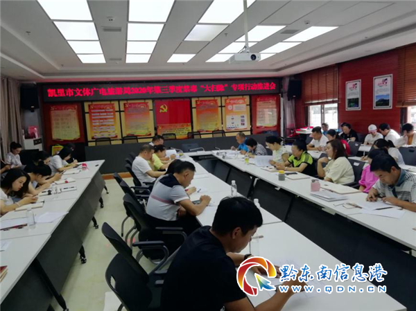 2020年8月10日,凱里市文體廣電旅游局在局二樓大會(huì)議室召開(kāi)2020年第三季度禁毒“大掃除”專(zhuān)項(xiàng)行動(dòng)工作推進(jìn)會(huì)。全局干部職工共90人參加會(huì)議,局黨組成員、副局長(zhǎng)楊廣主持會(huì)議。