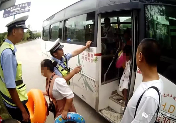 8月14日上午,凱里市公安局交警大隊三棵樹中隊交警楊柱在小高山路口執勤時,一輛白色大型普通客車突然從他跟前迅速駛過,一眼望去,車內“人頭攢動”,存在超員的嫌疑,楊柱迅速用對講機呼叫前方執勤的交警對其進行攔截。很快,白色大客車在新一中路口被交警攔停。當車門打開時,眼前的一幕讓幾名交警吃了一驚,車內竟 “疊羅漢”式坐滿了人,且半數以上都是小孩。