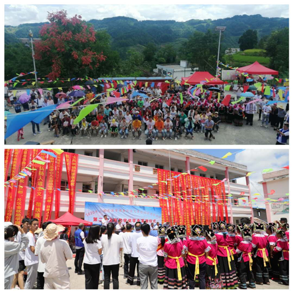 活動一直持續到傍晚,都力小學的人們漸漸散去,夕陽下,一道霞光從遠山斜射而來,樹蔭下吹來陣陣涼風,《眾人劃槳開大船》、《眾人劃船過大江》的歌聲又在廣場響起,金秋助學金發放儀式上的感恩情、知心話、濃濃意隨著歌聲又四處飄蕩。