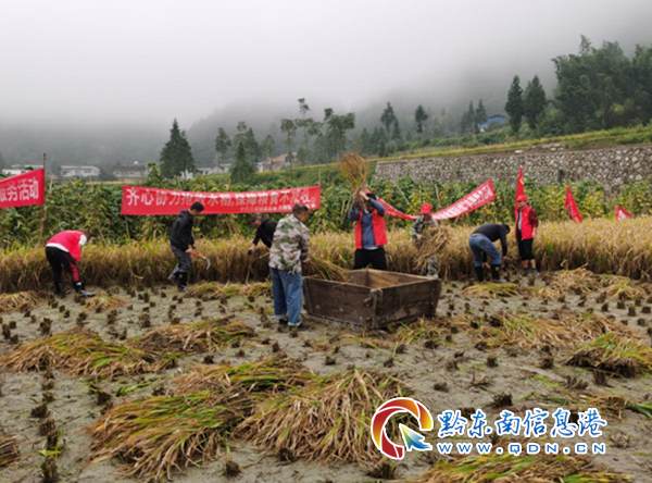 在稻田里,志愿者們挽起褲腳,擼起袖子,赤腳上陣,分工合作,不斷重復著割、遞、喂、收等動作,累得滿頭大汗卻干勁十足,田野間時不時迸發(fā)出一陣陣爽朗笑語,一抹抹志愿紅成為了鄉(xiāng)村田間靚麗的風景線。誰知盤中餐,粒粒皆辛苦,看著成片的稻田在鐮刀的揮舞下倒地壘成小山,再經(jīng)由打谷機的碾壓變成一粒粒谷穗,鋪曬到各家庭院中成為一地金黃,志愿者們深切感受到了勞動帶來的成就感和滿足感。