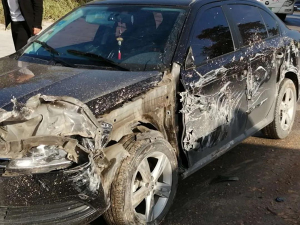 轎車一側被嚴重擦刮