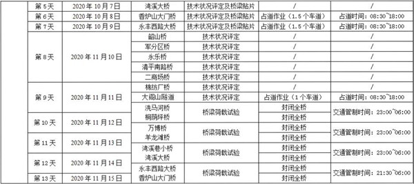 根據實際對橋梁(隧道)采取占用車道和全封閉作業