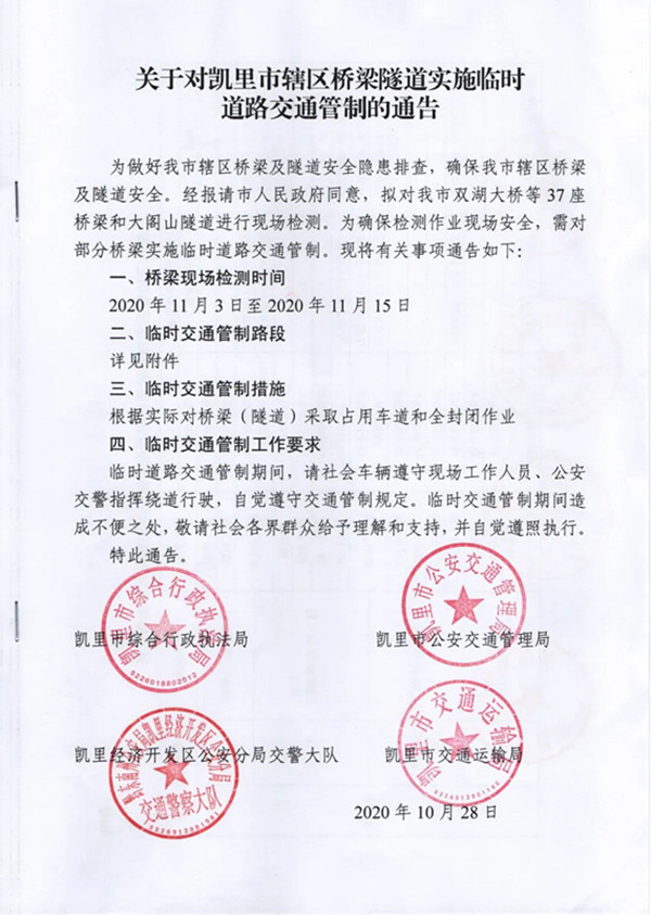 臨時道路交通管制期間,請社會車輛遵守現場工作人員、公安交警指揮繞道行駛,自覺遵守交通管制規定。臨時交通管制期間造成不便之處,敬請社會各界群眾給予理解和支持,并自覺遵照執行。