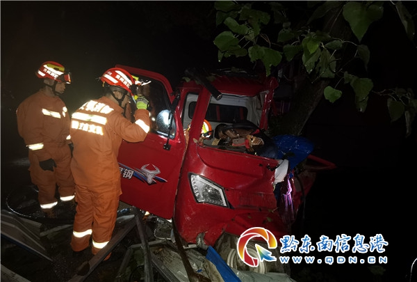 凱里:三輪車夜間撞樹一人被困 清江路消防成功處置