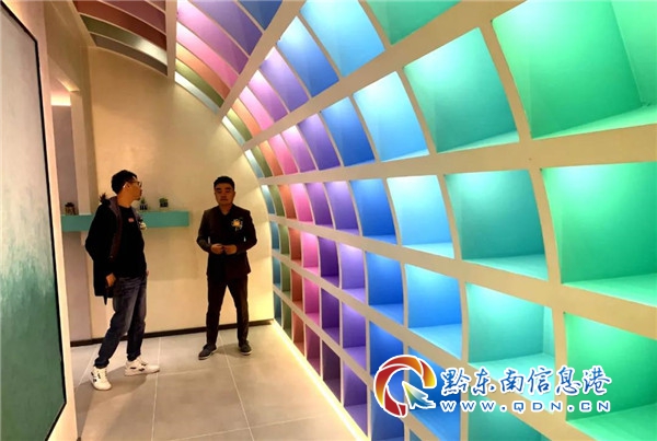展廳的內(nèi)部還這有一條炫酷十足的彩虹長廊,豐富多彩的顏色加上燈光設(shè)計(jì),讓人時空隧道般的感覺。不說,都完全不知道這是一個涂料展廳啊!這么具有設(shè)計(jì)感的走廊,來拍照的小伙伴絡(luò)繹不絕呢!