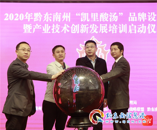 啟動儀式上,黔東南州人民政府副州長秦揚遠同志宣布2020年黔東南州“凱里酸湯”品牌設計大賽暨產業技術創新發展培訓活動啟動,與會領導共同啟動水晶球,標志著上述活動正式拉開序幕。