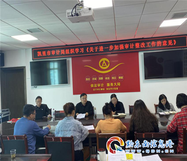 凱里市審計局黨組書記、局長袁文勝同志主持召開全局干部職工會,學習貫徹貴州省審計委員會《關于進一步加強審計整改工作的意見》文件精神。