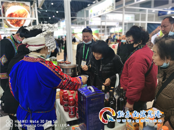本網訊 2020年11月28日上午,在重慶的第十八屆中國國際農產品交易會全國供銷全作社系統專館內,市民正圍在身著鮮艷的黔東南苗族服裝的供銷社工作人員身邊聽關于