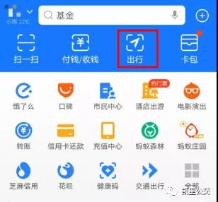 點擊支付寶首頁“出行”