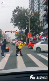 17時40分左右,路口的紅燈已經亮起,這時候一位老人在身邊人的攙扶下才緩慢的走到斑馬線的路中間,執勤人員看到后立馬趕過去。原來老奶奶年事已高,腿腳不便,所以走得比較緩慢。