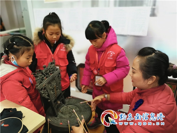 凱里苗侗風(fēng)情園內(nèi)黔東南州阿科里繡娘農(nóng)民專業(yè)合作社,迎來(lái)一批前來(lái)進(jìn)行非遺體驗(yàn)的小學(xué)生,小學(xué)生們?cè)谙炄尽⒋汤C、銀飾技藝的一系列非遺體驗(yàn)中學(xué)習(xí)匠心精神,感受、體驗(yàn)著非遺文化的博大精深。