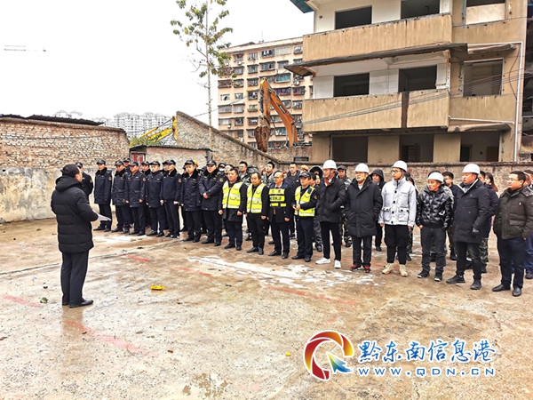 此次拆除為期2天,動用大型挖土機2臺、施工工人20余人。為確保拆除工作安全、有序、順進行,拆除前,城西街道做足準備工作,提前協調完成斷電、斷水、斷網及相關管路和線路切斷清理移除;提前完成保護性拆除施工通告張貼;提前完成征收協議簽訂房屋內人員催離、物品搬離;提前修建保護性施工圍擋。拆除現場救護車、醫務人員、對講機、警戒線、安全帽、工作證、灑水車、降塵車等件件備齊,現場秩序井然,5個警戒隔離小組分工明確,有效引導行人和過路群眾從安全區通過。