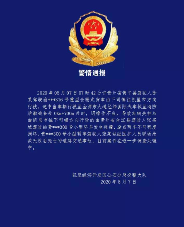 警情通報 | 凱里經濟開發區發生一起交通事故,致一人死亡!