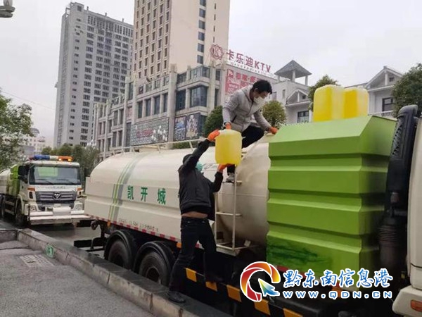 “根據區工管委的安排和部署,這次我們出動了5輛大型灑水車和1臺抑塵車來進行全面的消毒,針對凱里經濟開發區城區片區、下司片區及鴨塘片區的主次干道近240萬平方米的面積進行全面消毒。”采訪現場,凱里經濟開發區城鄉管理局副局長張秀慧告訴記者。為防止過路行人被消毒液沾淋,每臺灑水車均安排有執法車在前面引導。針對市民關心的噴灑物濃度過高是否對身體造成影響,張秀慧也介紹到,本次消毒液以二氧化氯稀釋液噴灑,請大家盡量回避,如身上有沾淋,用清水沖洗即可。