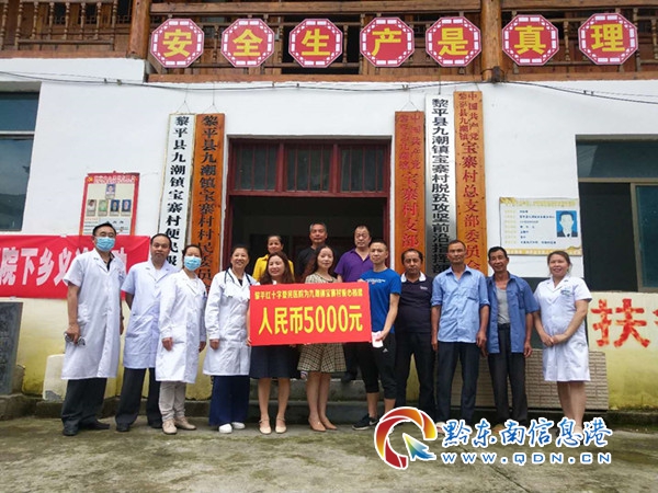 該院熱心公益和慈善事業,積極參加社會各種公益活動,自辦院以來該院累計捐款、捐物達100萬元。在九潮鎮寶寨村開展義診活動中,盡管資金困難、經費緊張,該院仍然不忘“奉獻、友愛、互助、進步” 的志愿服務精神,主動伸出援助之手,向寶寨村捐贈5000元,以改善該村辦公條件。