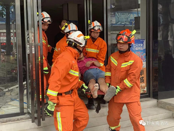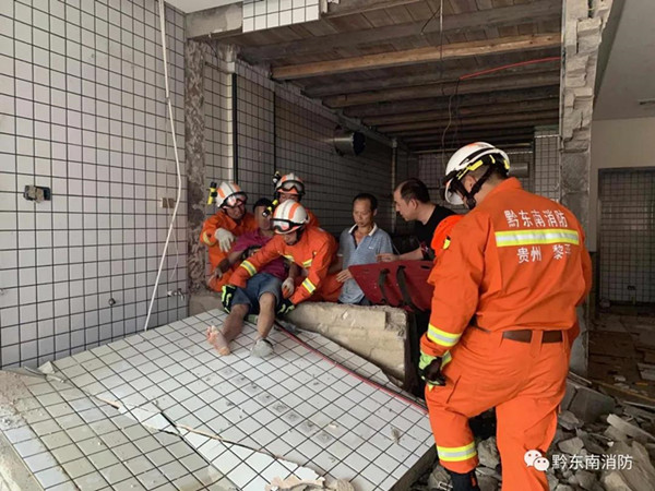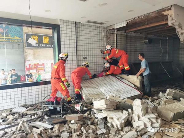 救援人員到達現場后,經詢問報警人和現場偵察得知,現場一名施工人員被一面倒塌的墻體嚴嚴實實壓住,無法動彈。為避免墻體發生滑動,對被困人員造成二次傷害,救援人員立即展開救援,第一小組對被困者身下及周圍的建筑廢料進行清理,并利用磚頭和千斤頂對垮塌的墻體進行支撐加固;第二小組使用液壓頂桿對倒塌墻體撐出空隙,以便于將被困人員救出。經過近20分鐘的緊張救援,被困人員被成功救出并送往醫院救治。