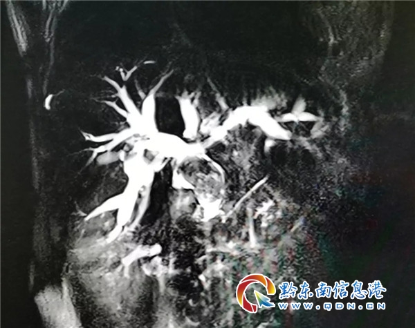 因?yàn)榍笊c信任,因?yàn)槿市呐c大愛,醫(yī)院與患者緊緊地?fù)肀г谝黄穑鎸?duì)病魔,他們共同努力,共克時(shí)堅(jiān)。為弄清李奶永病情病史,住院當(dāng)天,該院專家楊思清隨即安排醫(yī)務(wù)人員立即做好輔差,通過磁共振、CT檢查,發(fā)現(xiàn)其肝內(nèi)膽管多發(fā)結(jié)石伴肝內(nèi)膽管擴(kuò)張;膽總管中上段結(jié)石并膽總管擴(kuò)張;膽囊術(shù)后缺如。