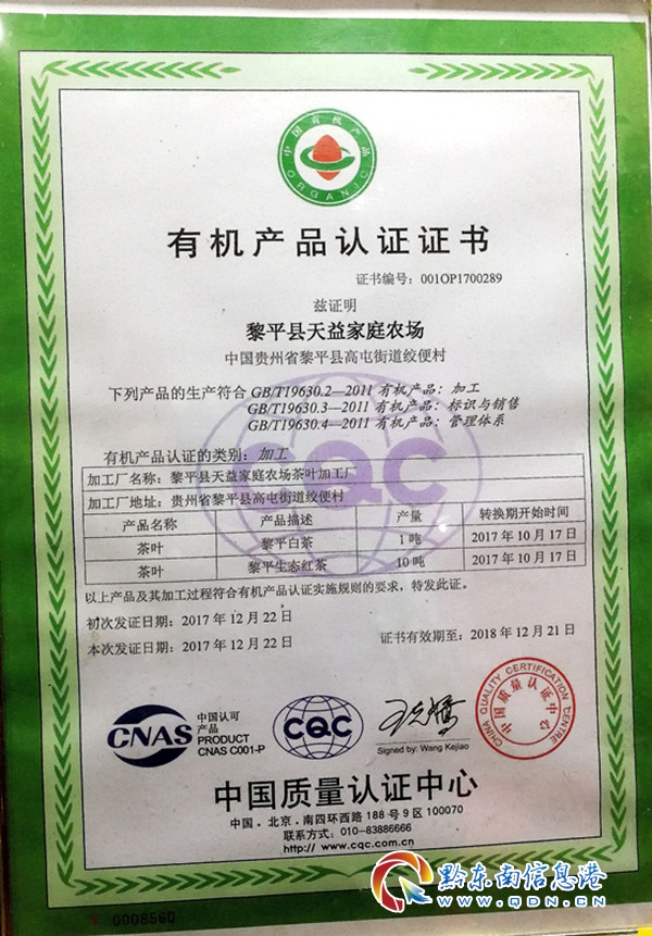 據了解,該農場的茶葉基地位于貴州省東南部的有中國名茶之鄉、中國茶業百強縣等榮譽之稱的----黎平縣,是該縣300多家茶企業之一,該農場從新建茶園開始就重視茶葉的生態、安全、科技、銷售等環節,打造“山油茶-茶樹-藍莓-楊梅-紅豆杉-草-馬尾松”等多物種的生態有機茶園基地,建成標準化加工廠,用自己名字(歐幫根)注冊了商標,引進和不斷提升茶葉生產加工技術,多次參加國內外評茶活動并捧回大獎,同時重視銷售,僅在黎平縣內就開設了4個茶葉專賣店,還積極外出參展宣傳推介,產品遠銷俄羅斯、北京、上海、山東、西藏、海南等20多個省(區),該農場在茶葉經營上一步一個腳印地向前,一個臺階一個臺階往上行。