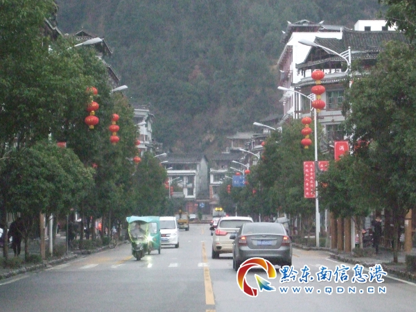 雷山圍繞“生態立縣、文化興縣、旅游強縣”三大戰略,以“林、水、樓、人”為載體,扎實推進文明縣城創建活動,一幅“林在城中建、水在橋中流、房在畫中繡、人在美中樂”的美妙畫卷徐徐展來。圖為雷山縣城大街小道大紅燈籠高高掛的情景。(張希才)