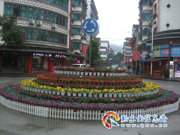 1月14日,筆者走進雷山縣城幾條街看到:雷山一中→雷公山大道→縣醫院→教廠壩→大十字→大廣場→雷山三中;縣信用聯社→縣民宗局(二橋)→七六四→縣木鼓廣場;縣農機中心→縣汽車站→大十字→望豐路口→返鄉創業一條街→縣氣象局→國稅局→丹江派出所;雷山二中→交警大隊→郎當河口→蚩尤大道→陶堯大橋等幾條主要路段沿街及大、小廣場周圍和8個鄉鎮都懸掛了6000盞(其中,縣城4000盞、鄉鎮2000盞)大紅燈籠。同時,在縣城大、小廣場,縣房產局門前十字路口轉盤和苗都公館門口轉盤等地,擺放了迎春花盆20000盆,扮靚了城鄉,迎接庚子年新春佳節到來。這是節前雷山縣市政部門為了給廣大市民群眾營造一個歡樂、祥和的節日氛圍,為城鄉增添了濃濃的異彩。