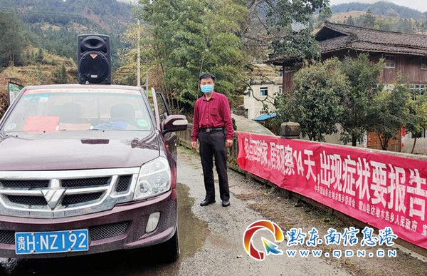 村主任王國君用自己的車及音響宣傳疫情防控和知識。