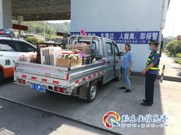 路政員來到貨車旁,看到車上水果種類多樣,有橘子、西瓜、菠蘿等,車主正悠閑地坐在車旁扇著扇子,于是路政員向車主出示執法證件表明身份,并詢問了解相關情況。但車主卻堅稱自己只是路過在服務區停留休息并非販賣水果。看著車上擺放的電子秤和塑料袋,路政員意識到事實可能并非如此,便告知車主將調取收費站廣場監控,如果發現有其販賣水果的證據,將根據《貴州省高速公路管理條例》等法規從重進行處罰。車主聞后自感心虛,馬上承認了在服務區販賣水果的行為。