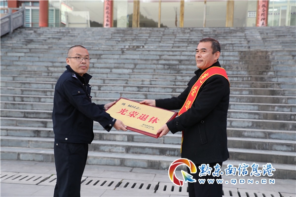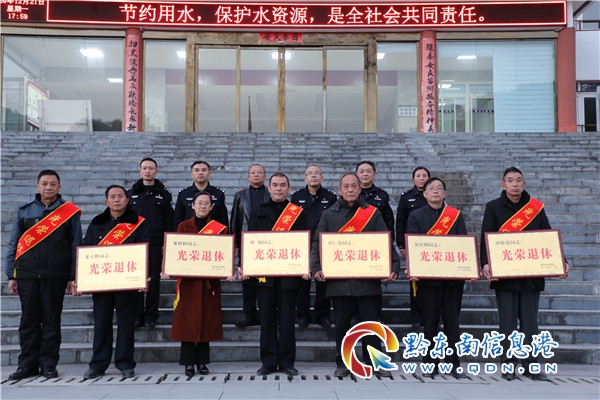 本網訊 12月21日,貴州省雷山縣公安局為弘揚隊伍主旋律,傳遞正能量,將暖警惠警措施落到實處,為2020年四名民警舉行光榮退休儀式。四位老同志從警30多年以來,在雷山縣幾十年如一日,在平凡的警務崗位上默默地耕耘,無怨無悔,把青春年華獻給了公安事業,公安局黨委對他們不忘初心、無私奉獻的敬業精神表示感謝。同時也希望老同志“退休不忘初心,離崗不離使命”。(楊正道)