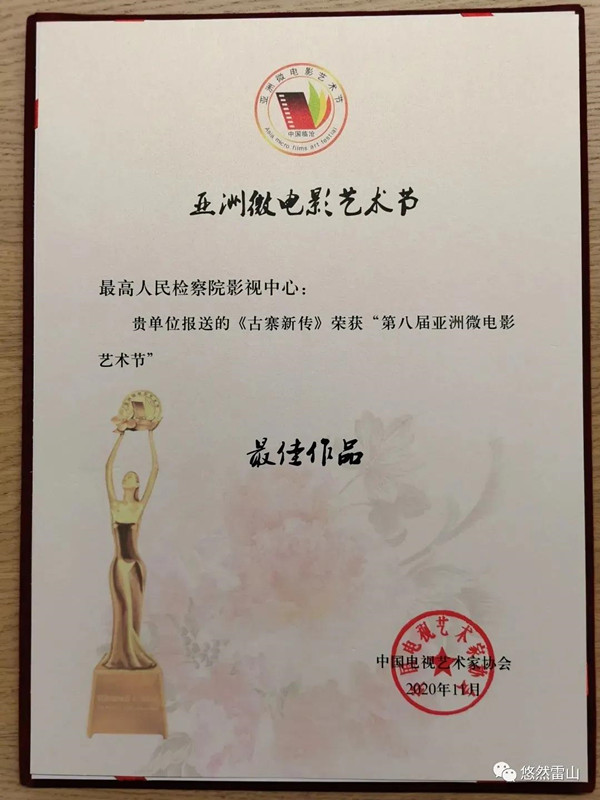 第八屆亞洲微電影藝術節(jié)最佳作品獎:《我是檢察官·古寨新傳》