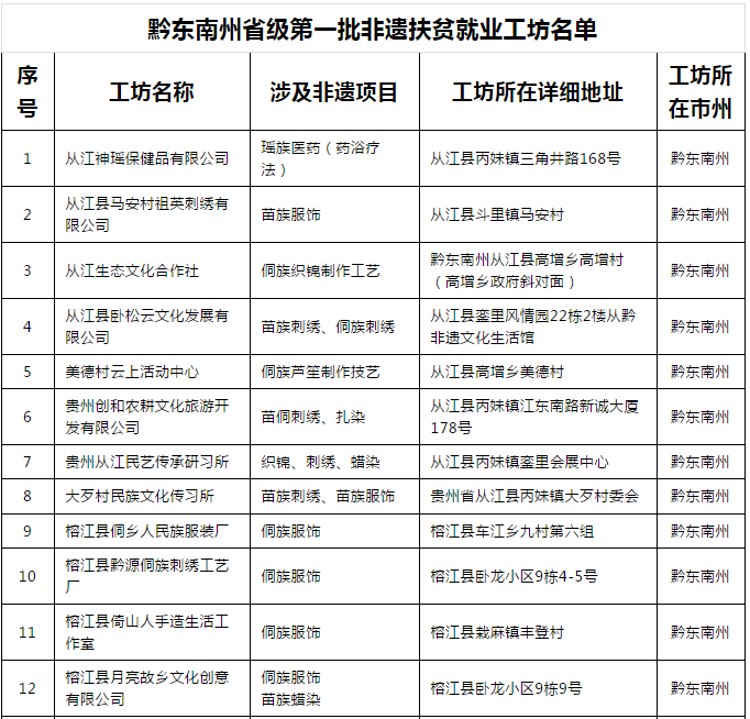 按照《文化和旅游部辦公廳、國(guó)務(wù)院扶貧辦綜合司關(guān)于支持設(shè)立非遺扶貧就業(yè)工坊的通知》精神,為進(jìn)一步推進(jìn)文化和旅游扶貧工作,我省以傳統(tǒng)工藝為重點(diǎn),依托各類非遺項(xiàng)目,支持在全省各貧困縣設(shè)立一批特色鮮明、示范帶動(dòng)作用明顯的非遺扶貧就業(yè)工坊,幫助貧困人口學(xué)習(xí)傳統(tǒng)技藝,提高內(nèi)生動(dòng)力,促進(jìn)就業(yè)增收,鞏固脫貧成果。經(jīng)各貧困縣文旅部門推薦申報(bào),黔東南州文體廣電旅游局嚴(yán)格篩選,推薦申報(bào)了93家非遺扶貧就業(yè)工坊,經(jīng)省文旅廳嚴(yán)格審核,確定丹寨縣國(guó)春銀飾有限責(zé)任公司等173家單位為我省第一批非遺扶貧就業(yè)工坊,其中黔東南州就有83家工坊入選,占總數(shù)的48%。