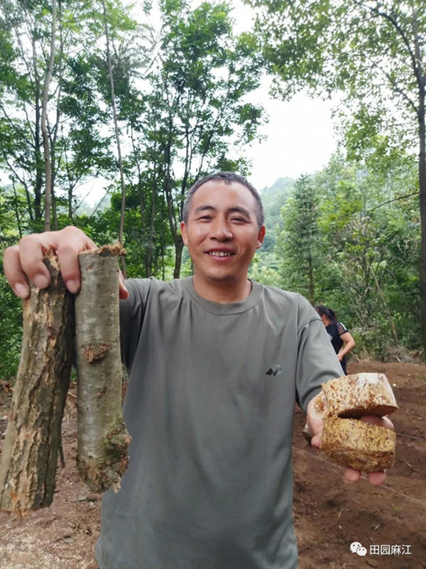 樂坪村因獨特的森林資源、肥沃的土壤和適宜氣候,成為了野生天麻生長的 " 樂園 ",這讓從小就愛上山 " 搗騰 " 的村文書陳龍林看到了村致富發展的門路,加上歷年來樂坪村民都有采天麻、種天麻的習慣,擁有著豐富的天麻種植經驗。陳龍林在和村支兩委商議考察后,決定由村合作社帶頭發展仿野生天麻種植。