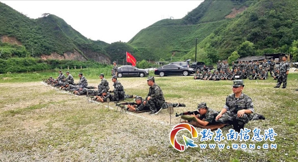 麻江縣基干民兵應急連正在進行實彈射擊。